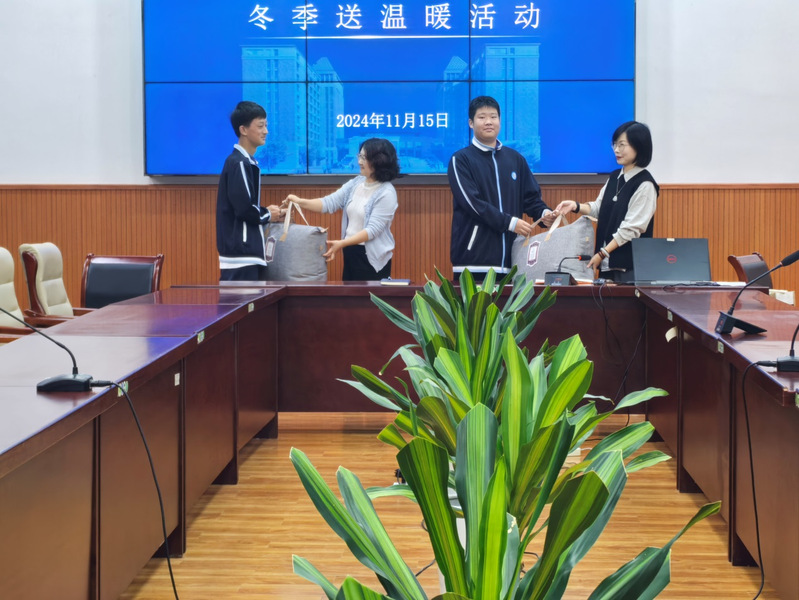 11月15日下午,“冬季送温暖”活动仪式在6101会议室举行。学工部部长方莉、副部长童子荣出席仪式并向特困生们送上冬被。方老师鼓励同学们要心怀感激,将这份关怀转化为前进的动力和向上的能量。同时,同学们更应该发奋图强,将党和政府的关怀转化为不断进步和成长的力量。受助学生们纷纷表达了感谢,表示将把感激之情化作学习的动力,勤奋学习,自立自强,不辜负学院的期望,并将以实际行动回馈国家、奉献社会。