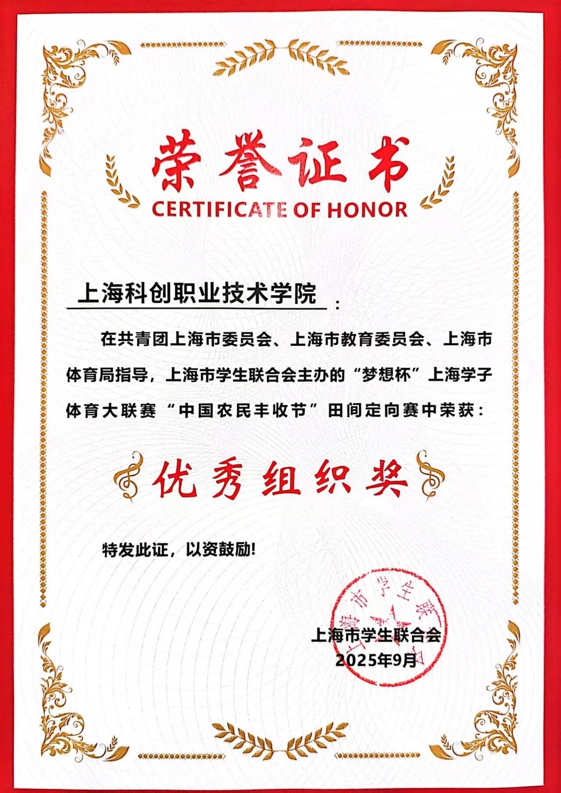 9月20日,上海市“梦想杯”体育大联赛中国农民丰收节田间定向赛落幕,此项赛事由上海市团市委、市学联主办,40支高校代表队参与赛事,科创职院派出12名学生组队参赛,斩获二等奖,学校荣获优秀组织奖。