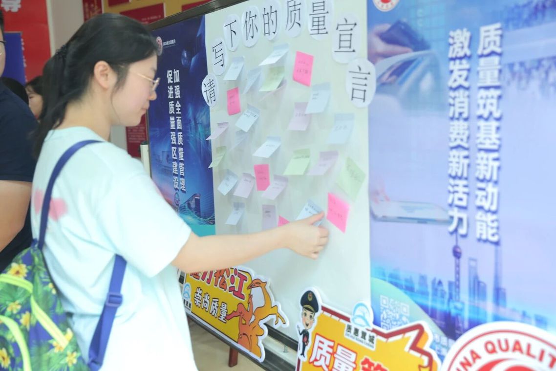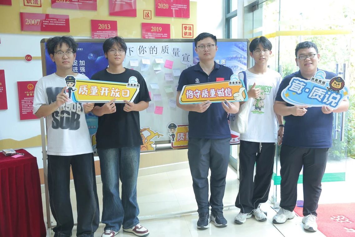 活动中,同学们以“青年对话”趣味知识问答形式,在轻松愉快的互动中进一步巩固了质量理念,并在会场外“质量墙”写下真挚宣言。