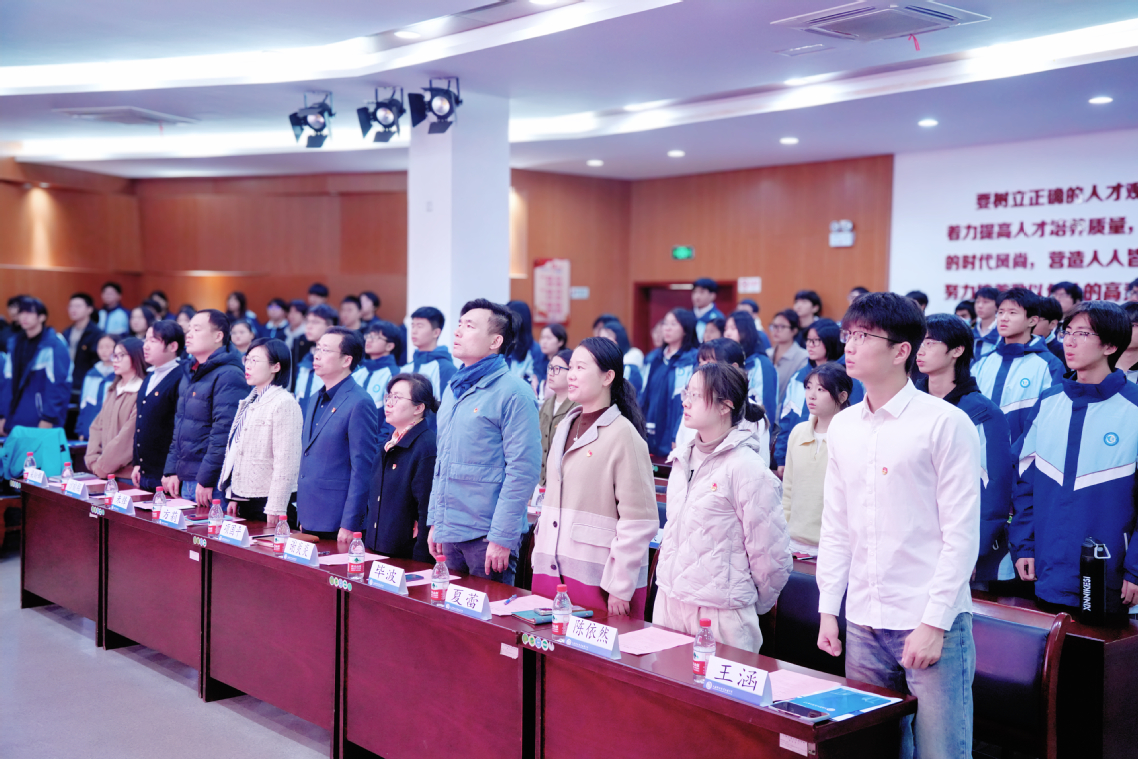 12月9日,科创职院第二期青年马克思主义者培养工程开班仪式暨2025学年第一学期新团员入团仪式在4101会议室庄严举行,活动以“从一二·九到新征程,青春与时代同行”为主题,旨在引领广大青年坚定理想信念、勇担时代使命。副校长项国平,马克思主义学院、校团委、各二级学院负责人出席活动,青马工程学员、新发展团员及学生代表齐聚一堂,共同见证这一青春奋进的重要时刻。