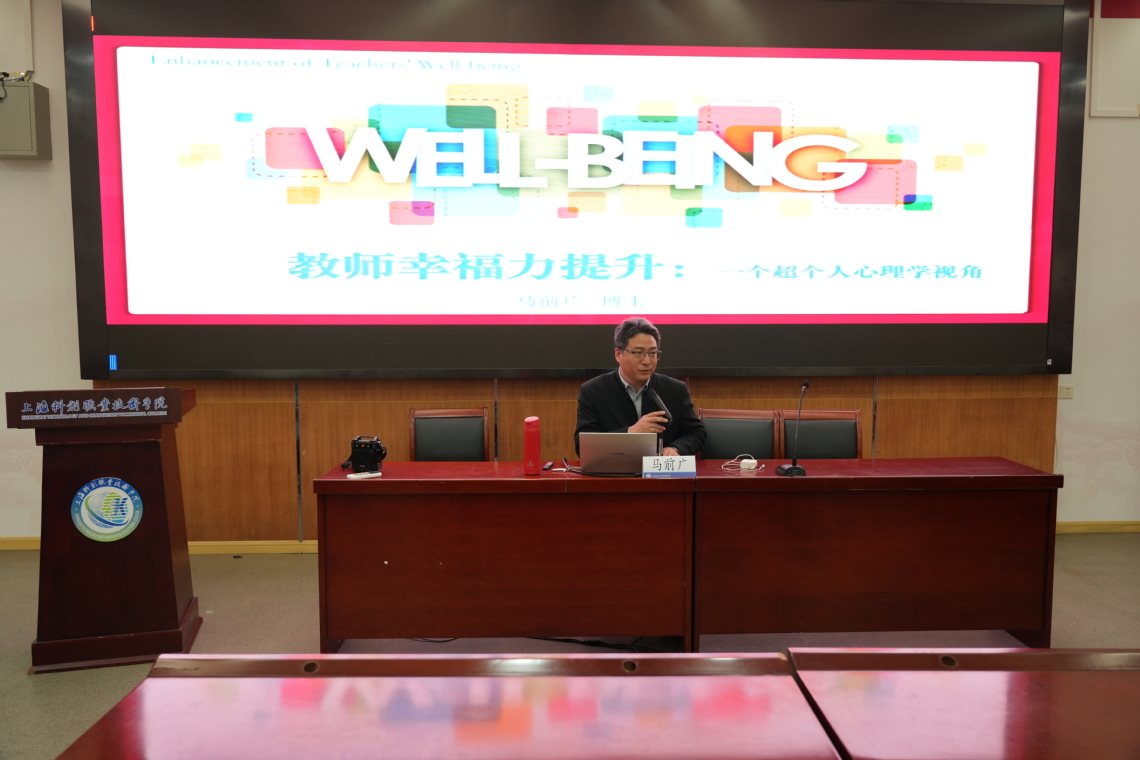 讲座中,马前广副教授从“超个人心理学”这一新颖独特的视角出发,引领大家重新审视和理解“幸福力”的深刻内涵。他谈到,在当前快节奏、高压力的教育环境下,部分教师面临着压力过大、角色冲突、职业倦怠等深层次的心理困扰。这些问题如同隐藏在冰山之下的暗礁,仅仅依靠传统的“情绪调节”或“积极思维”等表面方法,往往难以触及问题的根本。而超个人心理学则为我们打开了一扇全新的大门,通过转换意识状态,让教师们体验到心灵的解放与自由,从而获得更深层次、更持久的幸福。