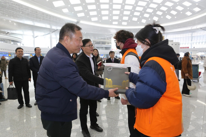 1月21日,KY开元集团官网入口党委书记何锋,党委副书记、院长李闽洲,副院长项国平一行来到上海松江站,现场慰问学院的春运志愿者。