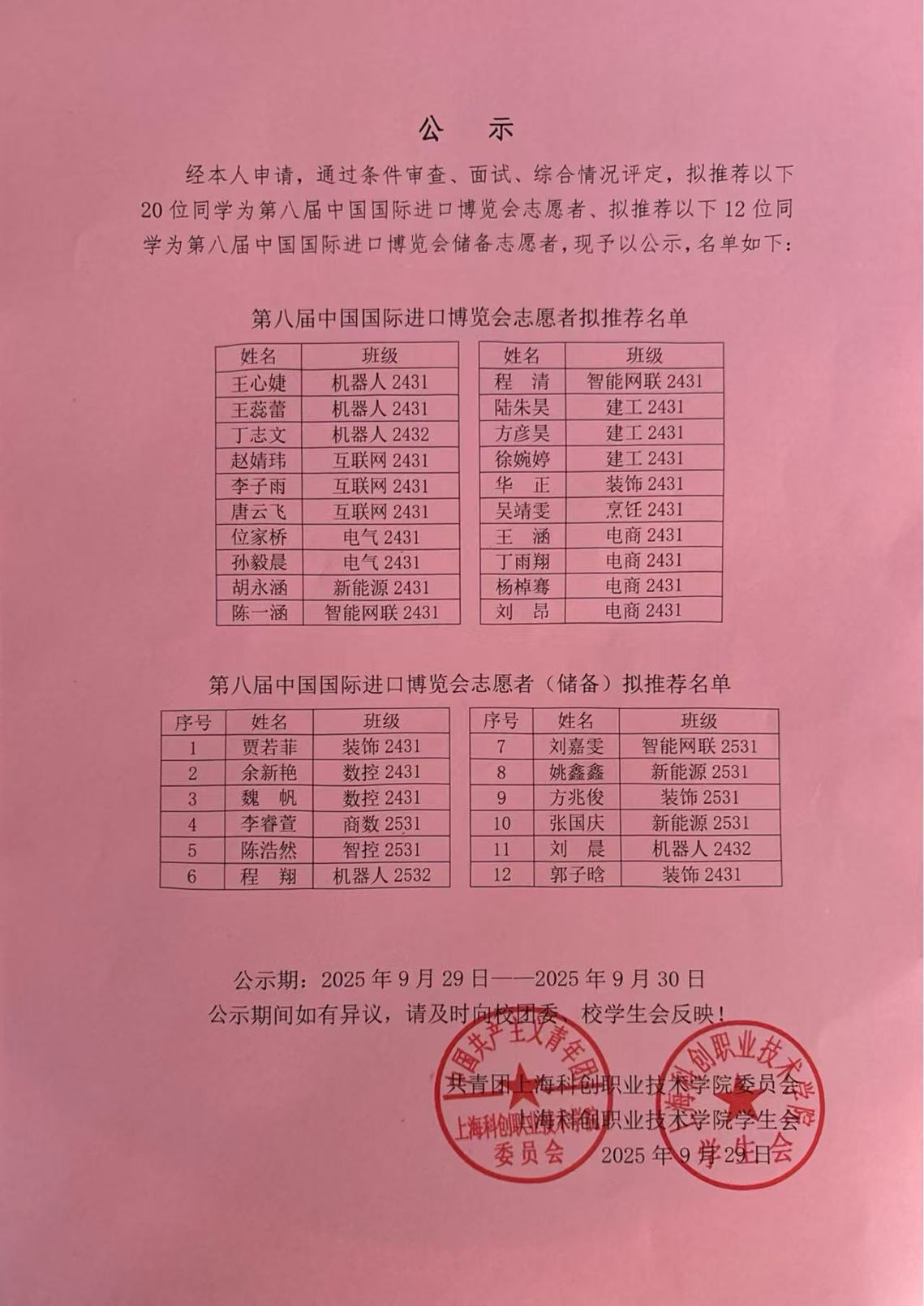 进博会志愿者名单公示