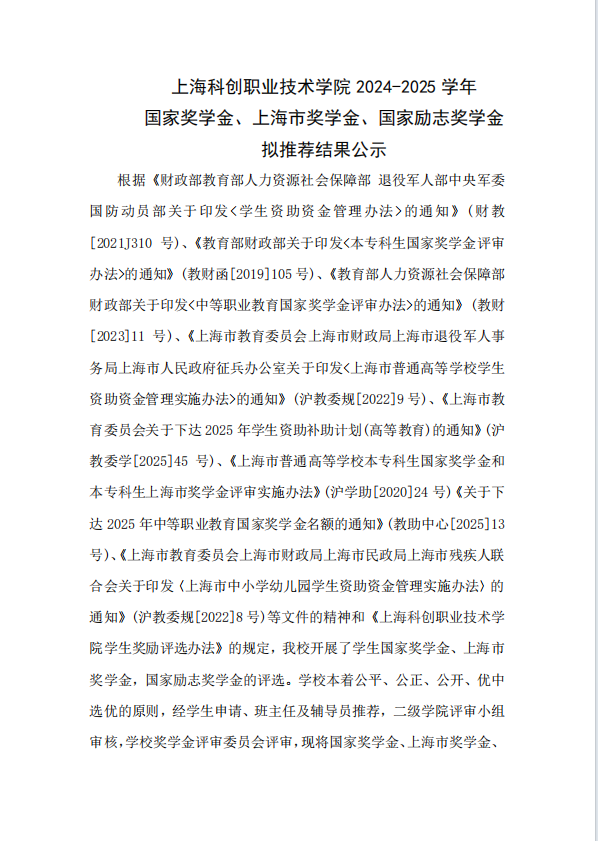 2025年国奖、上奖、励志奖学金拟推荐结果公示