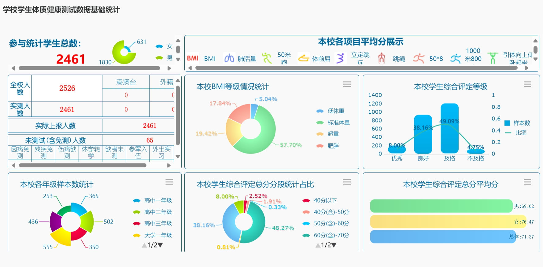 KY开元集团官网入口学生体质健康综合评价总平均分为71.37分,等级评定为中等。