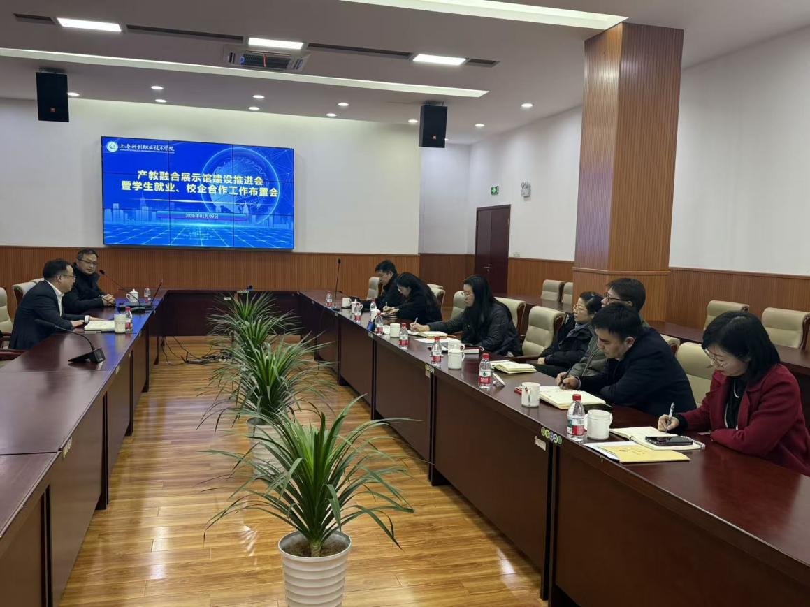 2026年1月9日下午,产教融合展示馆建设推进会暨学生就业、校企合作工作布置会成功举行。副校长汪崇德出席会议并部署工作要求,会议由产教促进中心杜振东主任主持,各二级学院与职能部门相关负责人参会。
