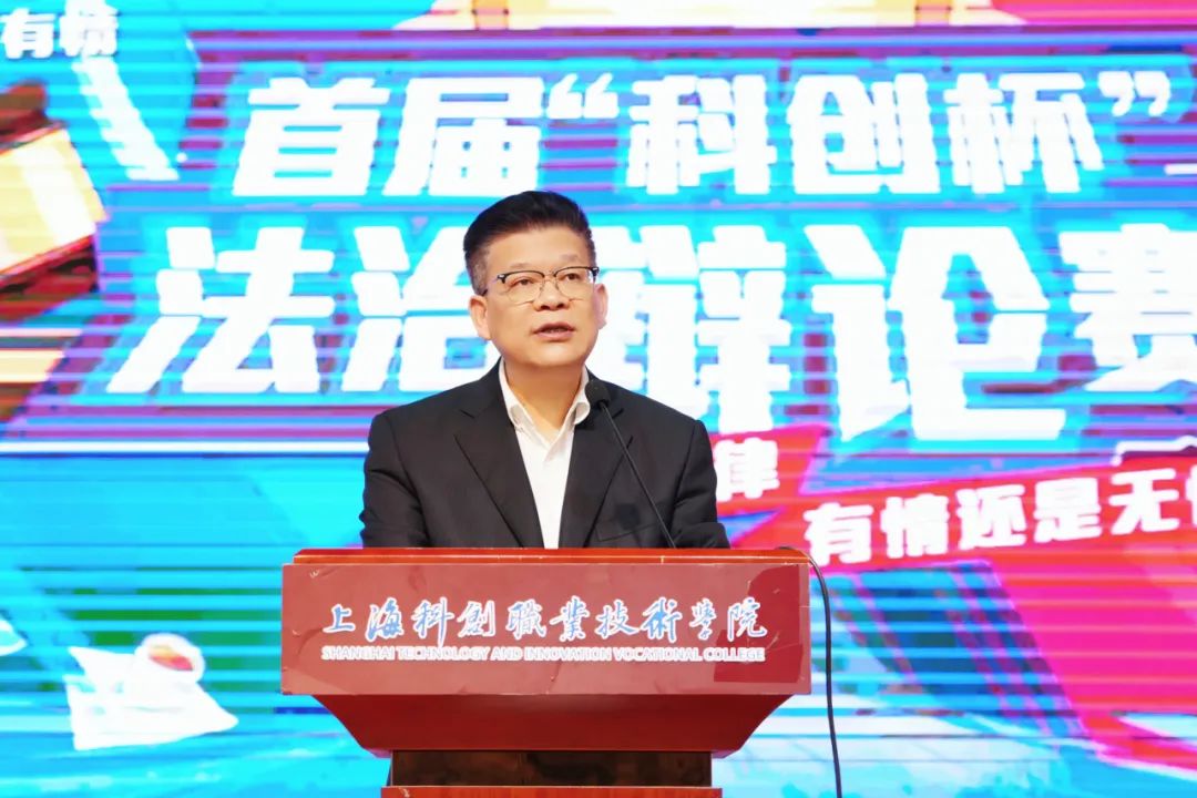 学院党委书记张巨浪为本场比赛做开场致辞,张书记在致辞中对出席活动的各位嘉宾致以热烈的欢迎和真挚的谢意,并表示法治是国家治理的核心要素,是社会进步的重要标志。我国正处于全面深化改革、推进依法治国的历史阶段,法治观念已经深入人心。在这个大背景下,校园法治辩论赛的举办具有重要的意义。希望通过本场辩论赛,科创学子能够坚定信念、勇于担当、严谨治学、勤奋好学,积极投身法治建设,为实现中华民族伟大复兴的中国梦贡献力量。