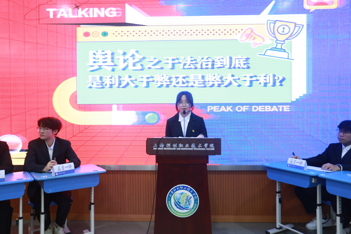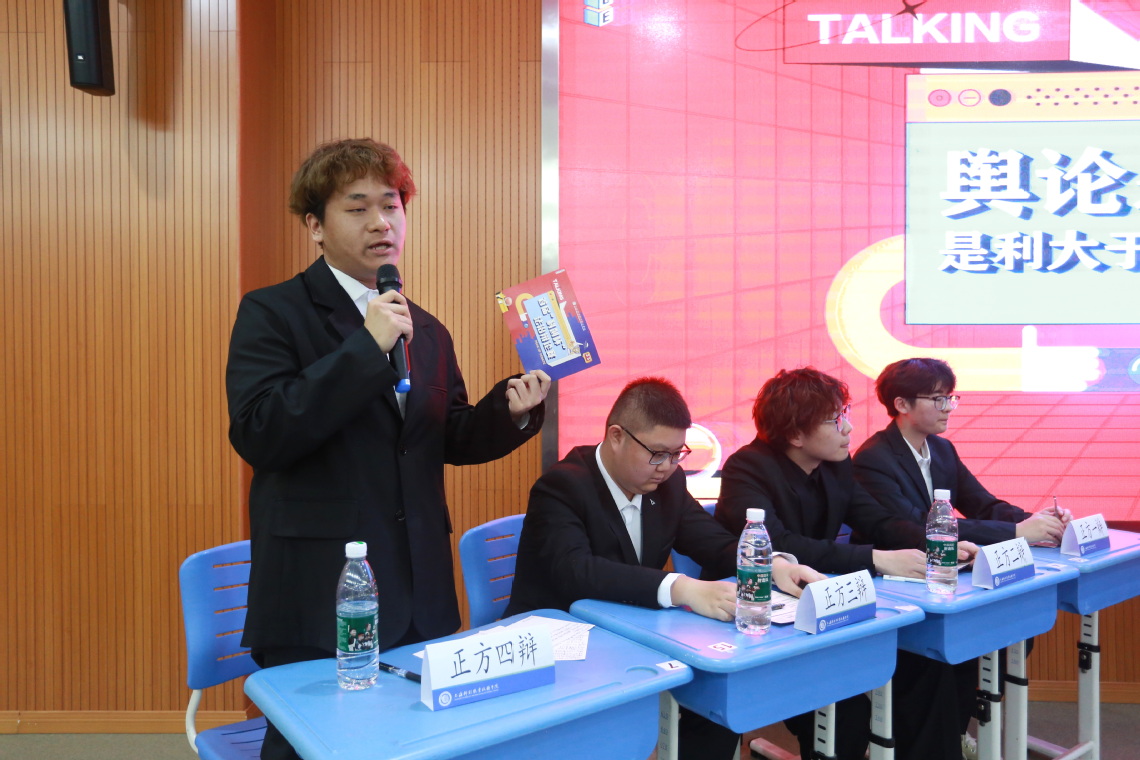 辩论赛的第一场,由智慧服务学院作为正方,智能汽车学院作为反方,围绕“舆论之于法治到底是利大于弊还是弊大于利?”这一辩题展开激烈交锋。正方智慧服务学院的辩手们认为,舆论作为社会监督的一种形式,能够有效推动法治进程,提升公众对法治的信任感,其积极作用不言而喻。反方智能汽车学院的辩手则指出,舆论的过度干预可能导致法律审判受到干扰,甚至影响司法公正,其潜在弊端不容忽视。双方辩手你来我往,各抒己见,场上气氛紧张而热烈。