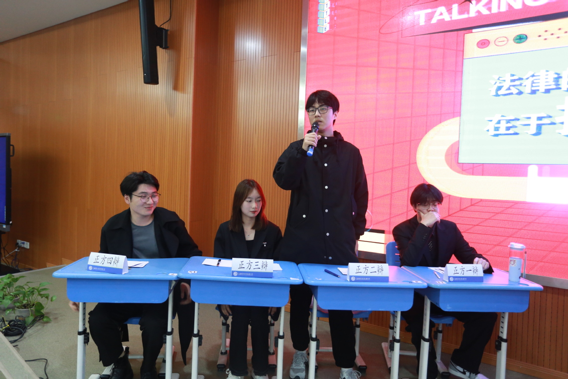 紧接着,第二场辩论赛拉开帷幕。正方智能建造学院与反方智能制造学院就“法律的主要目的在于扬善还是惩恶?”展开深入讨论。正方辩手强调,法律作为社会规范,其核心在于引导人们向善,通过明确的行为规范来塑造良好的社会风尚。反方辩手则坚持认为,法律的主要目的是通过惩治违法行为来维护社会秩序,确保社会的稳定与和谐。双方辩手逻辑严谨,论据充分,赢得了在场观众的阵阵掌声。