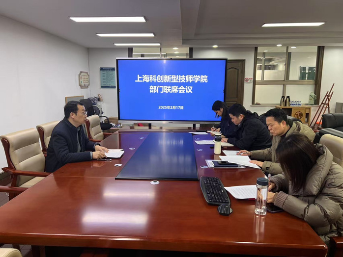 2025年2月17日上午,上海科创新型技师学院召开新学期部门联席会议,各职能部门负责人参加会议。分管副校长项国平出席并主持会议。