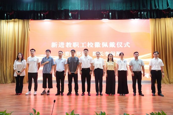 党委副书记、校长李闽洲为新进教职工佩戴校徽,用庄重而富有意义的仪式欢迎新鲜血液的加入。