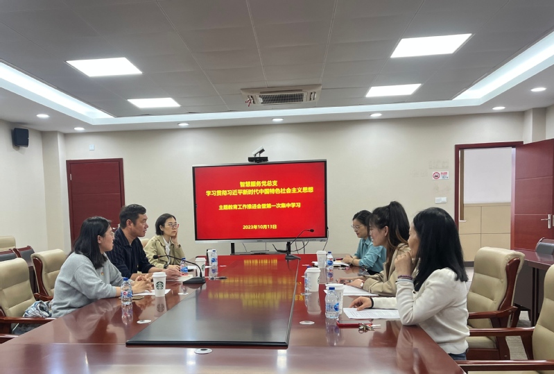 2023年10月13日上午10:00,智慧服务党总支在5-403室“关于学习贯彻习近平新时代中国特色社会主义思想”主题教育工作推进会暨第一次集中学习,会议由潘丽花老师主持,党总支全部党员参加了本次主题学习活动,受到了一次从思想到行动的洗礼。