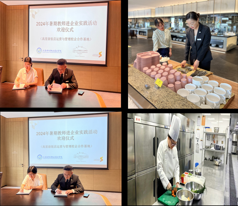 签约仪式后,两位老师在工作人员带领下办理了入职手续并于当日上岗,同时,酒店人力资源部根据两位老师的专业发展方向,安排了相应工作岗位和带教师傅,相信通过2个月企业实践,老师们对酒店餐饮服务、餐饮管理、餐饮制作和厨房运营会有更深入地了解,在促进教师个人成长和专业发展的同时,为学校的教育教学改革提供有力的支持和保障。