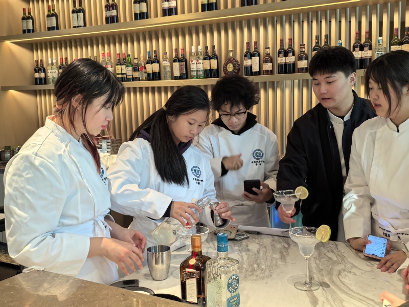 与此同时,调酒组的同学们则在酒店的酒吧区域开始了他们的学习之旅。在资深调酒师的带领下,他们了解了各种酒类的特点和调制方法。通过亲手调配几款经典的鸡尾酒,同学们不仅掌握了调酒的基本技巧,还感受到了调酒艺术的魅力。