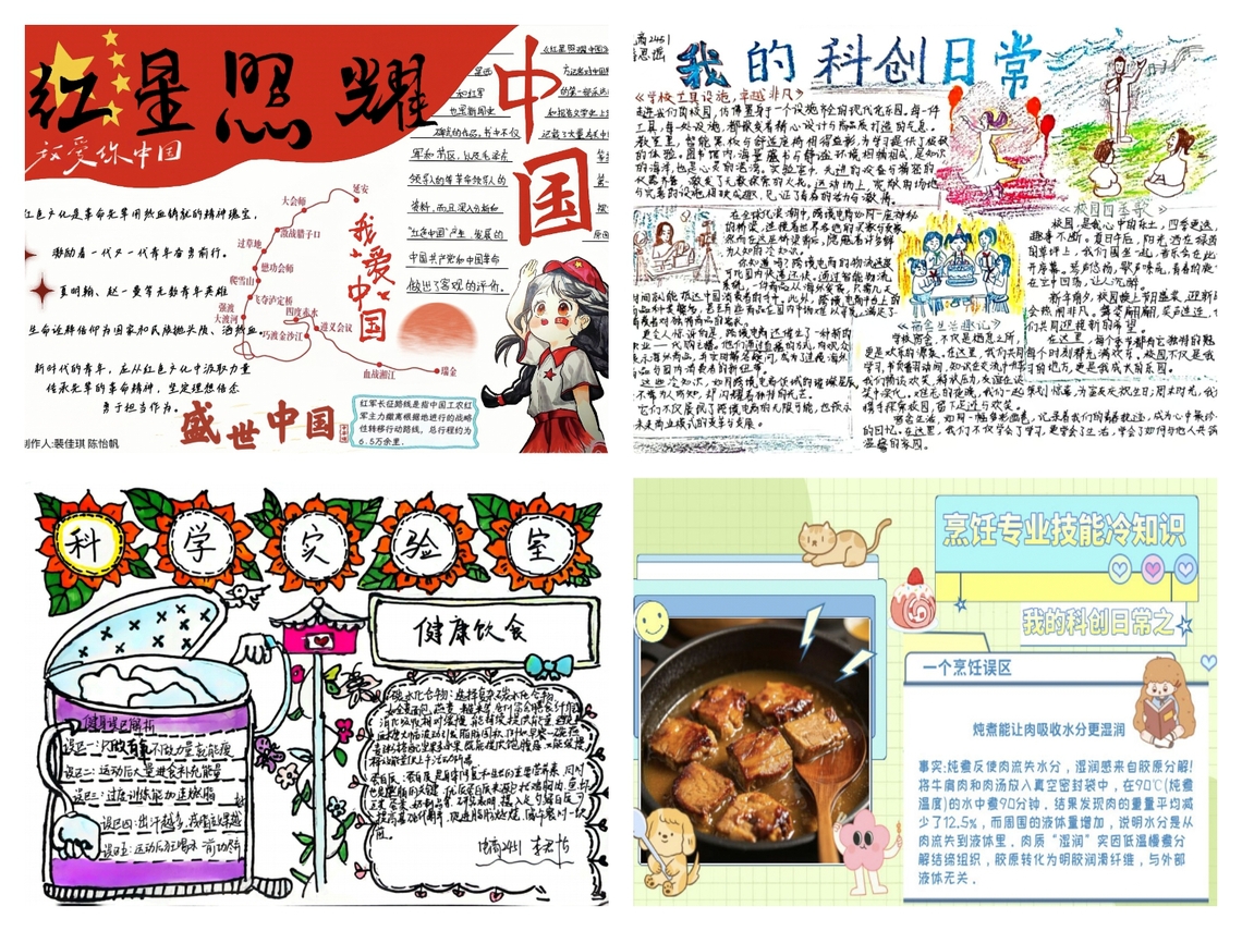 为激发广大科创学子热爱生活、认可专业,培养其创新思维与实践能力,增强团队协作能力,提升综合素养,争做有理想、有追求,有担当、有作为,有品质、有修养的新时代大学生,校学工部自3月开启举办“创意科创·青春绽放”小报征集活动。智慧服务学子积极响应,紧紧围绕《我的科创日常》、《心灵驿站·青春成长》、《我追随的那抹红》、《科学燃脂实验室》四项主题,利用身边资源、协力创作一幅幅精美的作品。