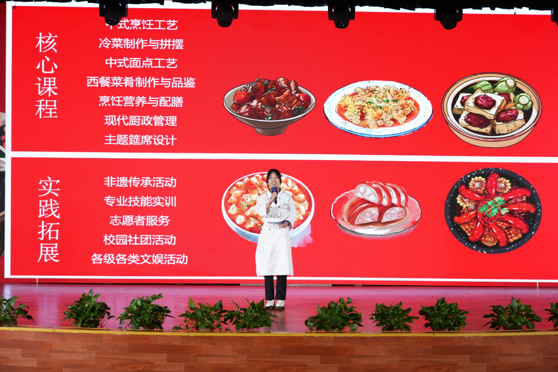 大家好!我是来自智慧服务学院烹饪工艺与营养专业的程法莹。我们这一届共有34名同学,我们的课堂,是展现中西餐热菜的翻腾、呈现冷菜制作的静美。能掌控烹饪营养的精准配比、也可以在厨政管理中学会运筹帷幄——这些课程像一道道秘制配方,将我们锻造成兼具技艺与匠心的厨者。