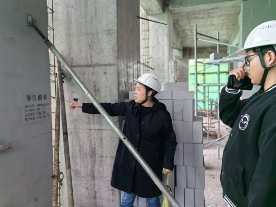 学院邀请了综合大楼施工单位技术总负责人参与现场介绍与讲解。目前,学院综合大楼项目施工已进入主体工程施工阶段,项目为预制装配式建筑,共计11层。外墙采用模卡砌块进行砌筑,内墙为加气混凝土砌块,同时结合抗震要求,每层设置了抗震阻尼器。从脚手架搭设规范、墙体砌筑要求和构造柱、圈梁等构造设置要求到预制钢筋混凝土墙体、预制钢筋混凝土柱安装,黄鸽老师和全体指导老师一起配合企业工程师、企业技术人员进行了详细的介绍。