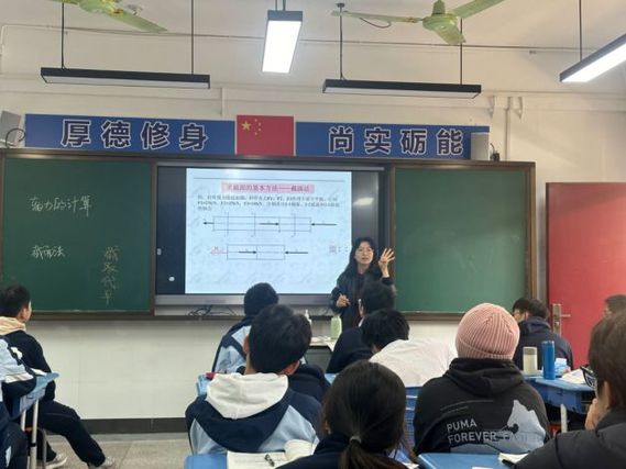 本次研讨课活动包括两个环节,现场听课和课后评课。研讨课由智能建造学院刘籴仪老师执教,课程为建筑力学与结构,研讨课内容围绕轴力的计算展开。在公开课展示阶段,刘老师贯彻课堂以学生为中心的理念,以丰富充实的教学内容,引导启发的教学方法,调动了学生上课积极性,学生积极配合,课堂师生互动充分,展现了良好的课堂氛围。该课程为理论课,以小组形式开展,教师不断抛出问题引导学生解决问题。同时,刘老师在课堂中引入工程实例,理实一体,并通过体验橡皮筋拉力的小游戏使抽象概念具体化。在课程教学中,多环节组织学生开展小组讨论,引导学生归纳总结轴力计算方法截面法的基本步骤,结合进阶练习帮助学生逐渐理解、内化、迁移知识点,并在此基础上探索了课程思政的融合。
