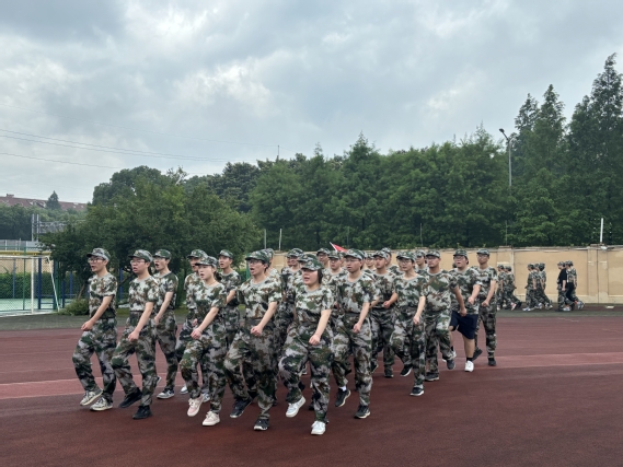 随着日头高悬,正步训练的号角响起。每一步踢出,都是对毅力的锤炼;每一次手臂的摆动,都蕴含着不屈的力量。当微风拂过,带来片刻的凉爽,同学们的脸上绽放出会心的微笑,那是对艰辛付出的自我肯定,也是对团队并肩作战的温馨记忆。汗水与努力,让他们的意志更加坚韧,如同被烈日铸就的钢铁,熠熠生辉。