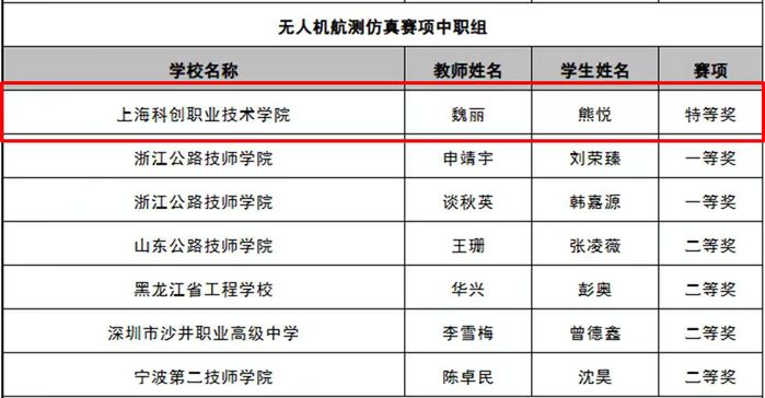 在无人机航测仿真赛项(中职组)中,KY开元智能建造学院学生熊悦凭借扎实的专业基础、熟练的操作技能和稳定的临场发挥,从众多参赛选手中脱颖而出,荣获该赛项特等奖,也是该组别全国唯一获此最高奖项的选手。魏丽老师凭借出色的指导工作,同时获评“优秀指导教师奖”。