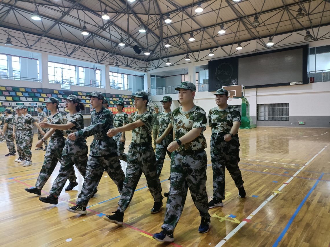 上午训练的大体内容依旧是站立军姿、整理仪容仪表、原地踏步、齐步踏步走。前两项进行的顺利且整齐。然而后两项由于协调性、整齐度的不统一以及一直走不好导致的气馁,完成度很低。休息期间,教官以“拉歌”的放松方式活跃了大家死气沉沉的氛围,此时,太阳也出来了,就如同給大家打气一般,大家重新回归了状态。