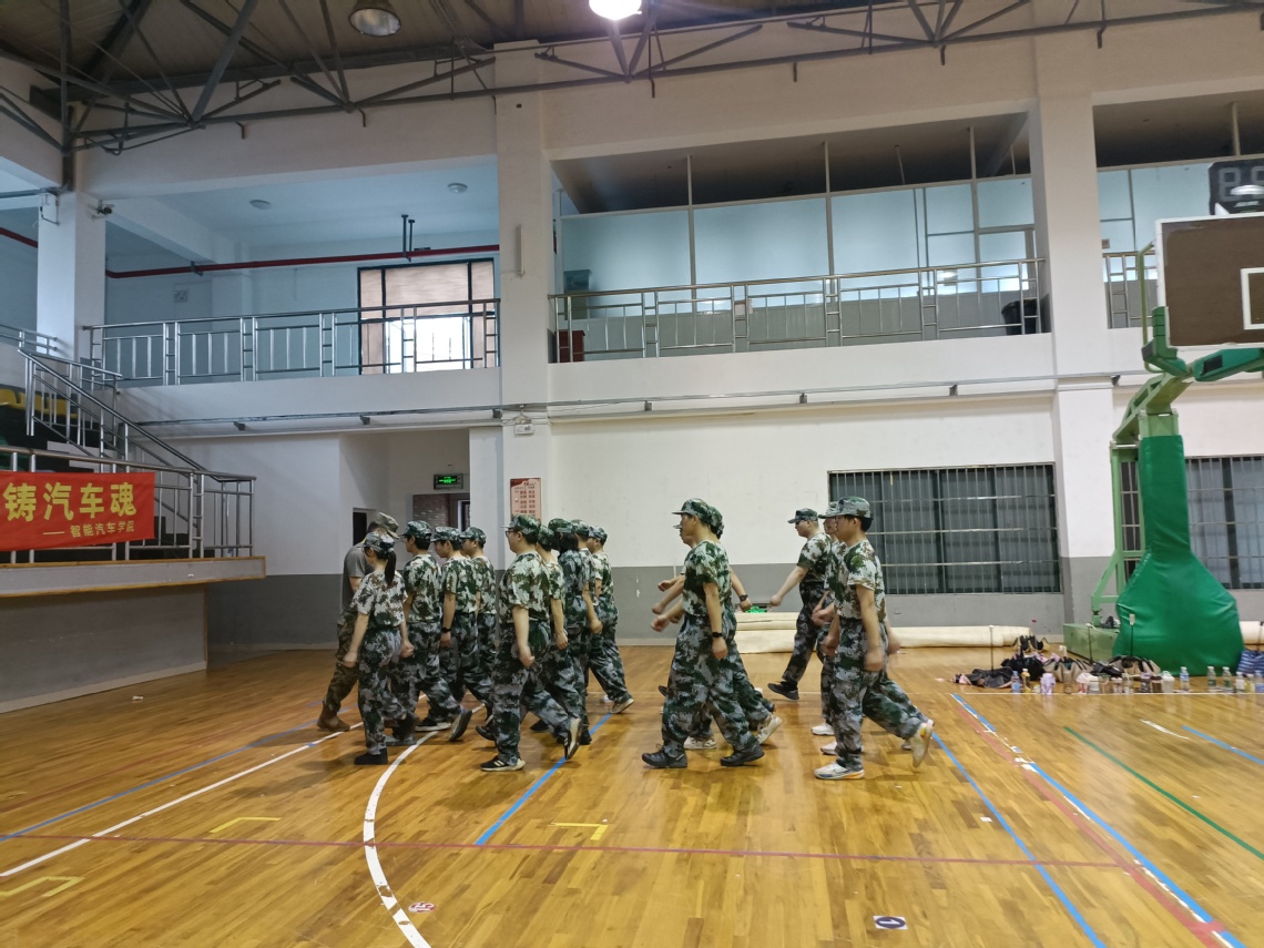 2024年6月26日,智能汽车学院六连学子们迎来了军训的第三天,瓢泼的大雨也抵挡不住同学们积极训练的心,体育馆内明黄的亮光宛如学子们内心雀跃的火苗,他们在教官的带领下进行着整齐严肃的队列训练。