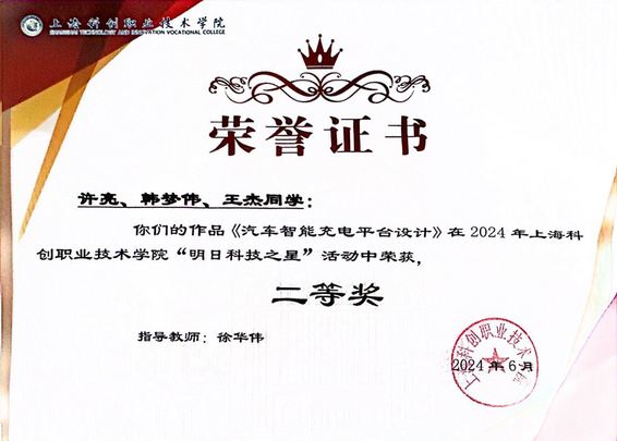 由许亮、韩梦伟、王杰三位同学组队的参赛作品《汽车智能充电平台设计》获得KY开元集团官网入口“明日之星”二等奖。