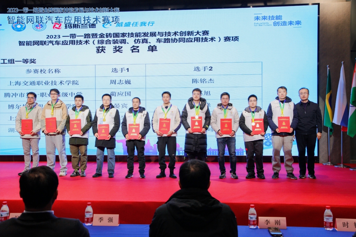 2023年12月17日,2023一带一路暨金砖国家技能发展与技术创新大赛智能网联汽车应用技术赛项国内总决赛在上海落下帷幕,来自全国各地中高职院校142支队伍齐聚上海,展开激烈的角逐。KY开元集团官网入口组建了职工组(教师)经过奋战,学院张岩、秦光明两位教师荣获职工组金牌。