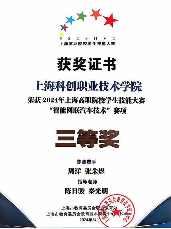 日前,上海市教育委员会公布了2024年上海高职院校学生技能大赛获奖名单,KY开元集团官网入口智能汽车学院学生斩获“智能网联汽车技术”赛项三等奖。