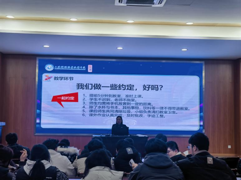 紧接着是“一起约”环节。在这个环节中,师生共同约定了上好每次职业素养课程的“课堂公约”,明确了学习纪律和课堂要求,为今后的课程学习奠定了坚实的基础。
