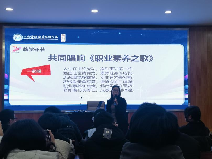 首先进入的是“一起唱”环节。在张老师的带领下,同学们齐声唱响了《职业素养之歌》,悠扬的旋律中充满了对未来的憧憬和对职业素养的追求。