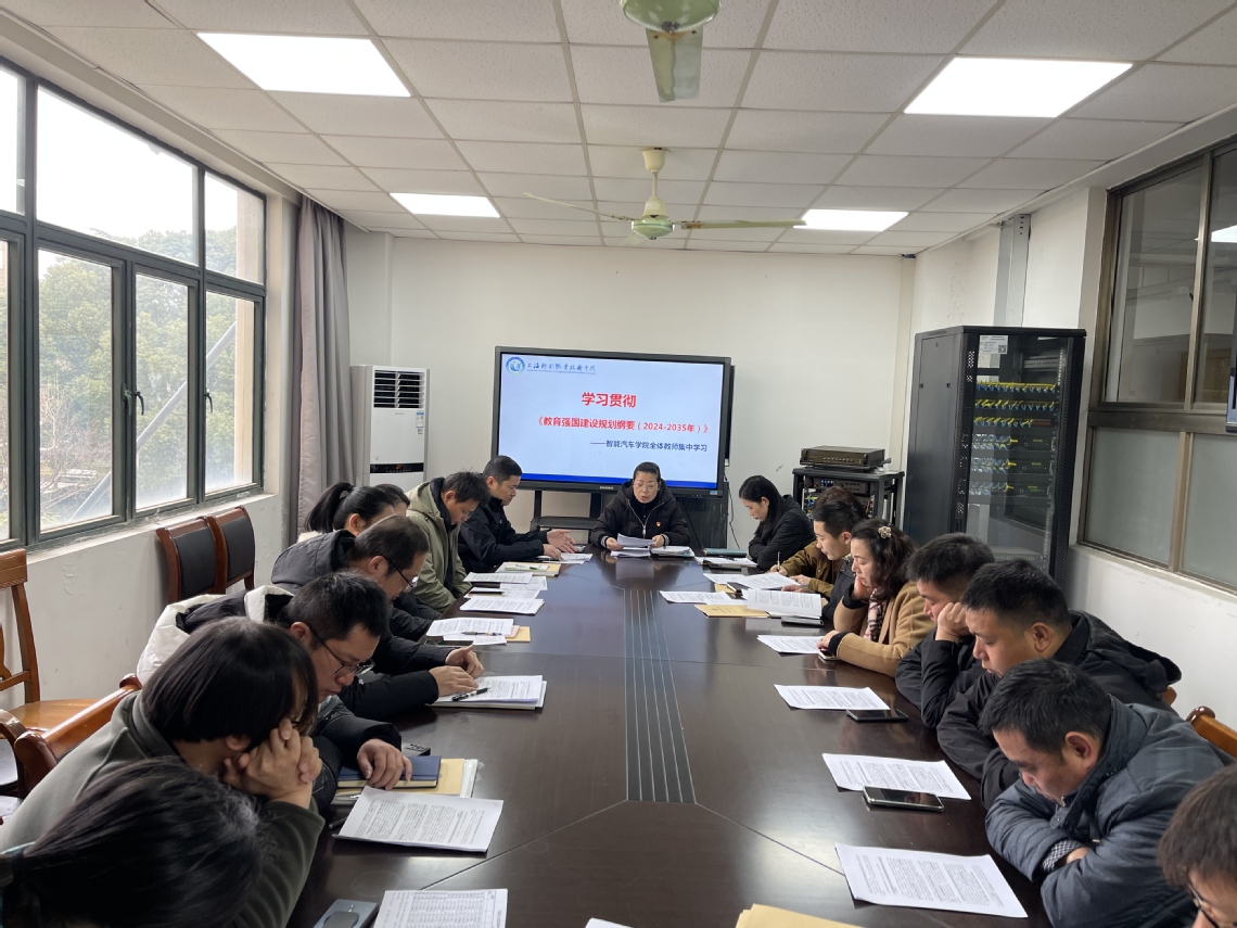 紧接着,徐华伟带领全体教工深入学习了《教育强国建设规划纲要(2024-2035年)》。她强调,作为教育工作者,要时刻牢记立德树人的根本任务,将课程思政融入专业课程学习中,培养出既有专业技能又具备高尚品德的优秀人才。同时,她还着重指出,教师作为学生的引路人,必须以身作则,加强师德师风建设,为学生树立良好的榜样。