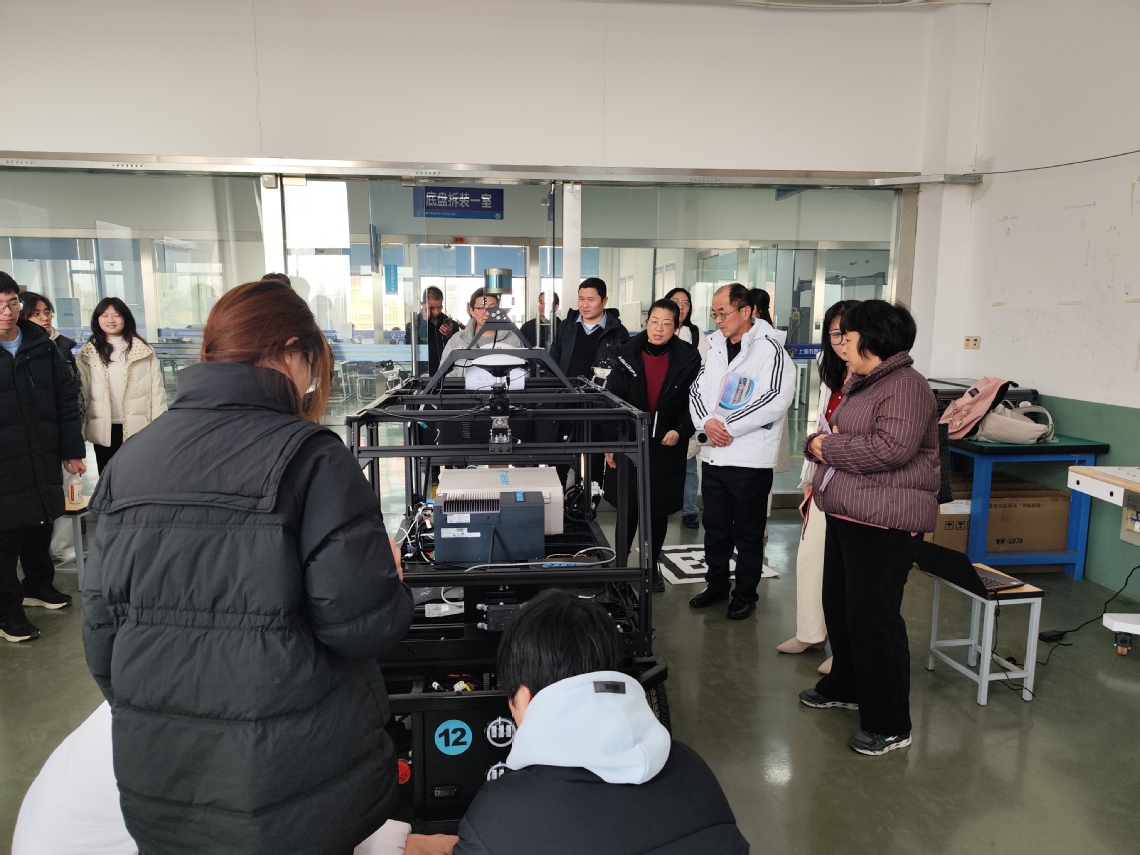 在智能汽车学院副院长(主持工作)徐华伟的引领下,副院长陈日骏的陪同下,来访团队进入22号楼汽车实训中心。时值学生社团活动时间,叶院长一行现场观摩了“新能源汽车故障诊断”“智能网联小车传感器安装与调试”等沉浸式教学场景。在智能网联汽车技术实训区,两校教师就“岗课赛证”融通模式展开现场研讨,学生们展示的训练实操获得来宾的高度评价。