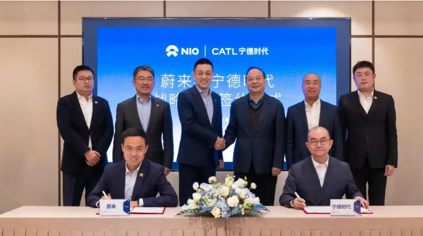 3月17日晚上,蔚来和宁德时代在福建宁德签署了战略合作协议。双方将通过构建覆盖全系乘用车的换电网络、统一行业技术标准、深化资本与业务合作,为广大用户提供更高效的能源解决方案,引领新能源汽车产业迈向高质量发展新阶段。 在此基础上,双方将进行资本合作,宁德时代正在推进对蔚来能源不超过25亿元人民币的战略投资,进一步巩固双方战略合作伙伴关系。双方通过技术互通、资本和商务合作等方式,实现「1+1>2」的产业贡献。 蔚来高级副总裁沈斐和宁德时代换电业务总经理杨峻代表双方签约。我和宁德时代创始人、董事长兼CEO Robin在现场见证。蔚来CFO曲玉,蔚来高级副总裁曾澍湘,宁德时代市场体系联席总裁韩伟,宁德时代首席投资官王红波,宁德时代CFO郑舒等出席签约仪式。
