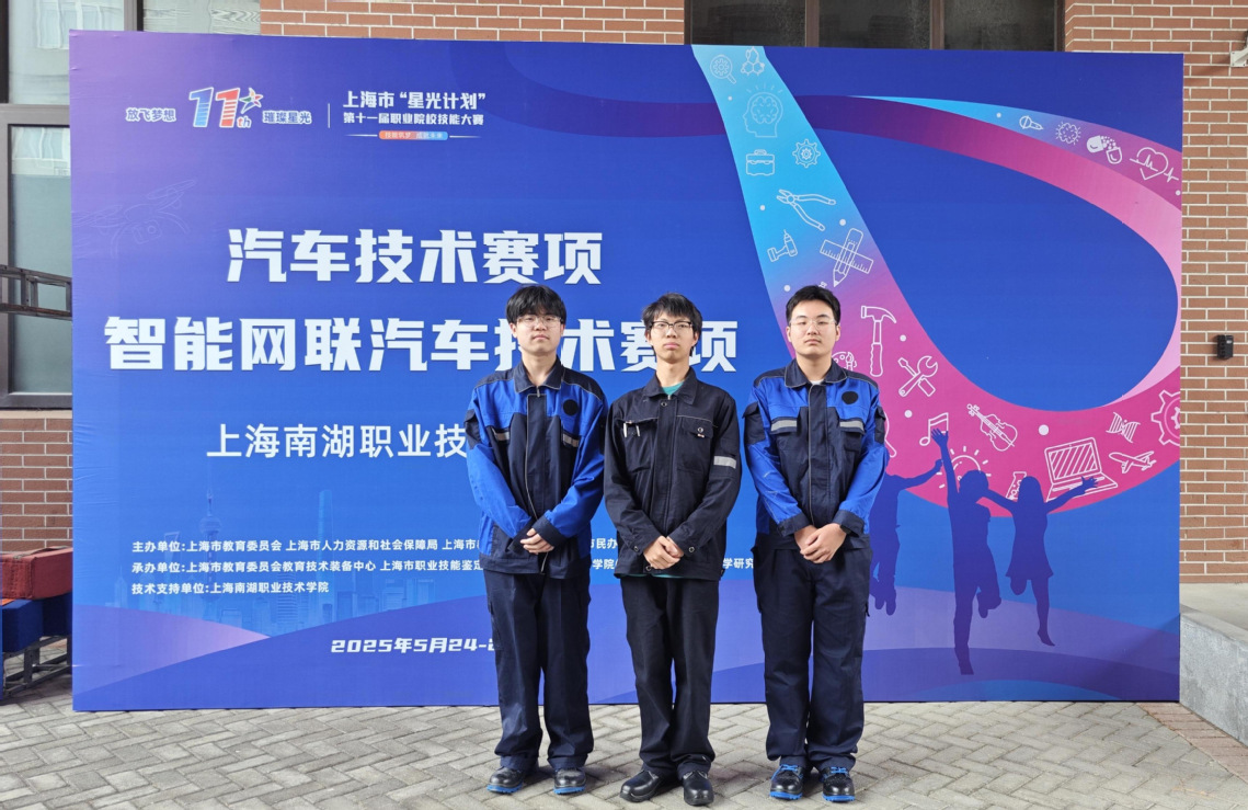 2025年5月24日,第十一届“星光计划”职业院校技能大赛汽车技术赛项于上海南湖职业技术学院圆满落幕。领队陈日骏,指导老师林勇、夏生旺。这次赛项今年吸引了全市15所中高职院校,共有45位选手参与,彰显了汽车中高职新生代参赛的热情。