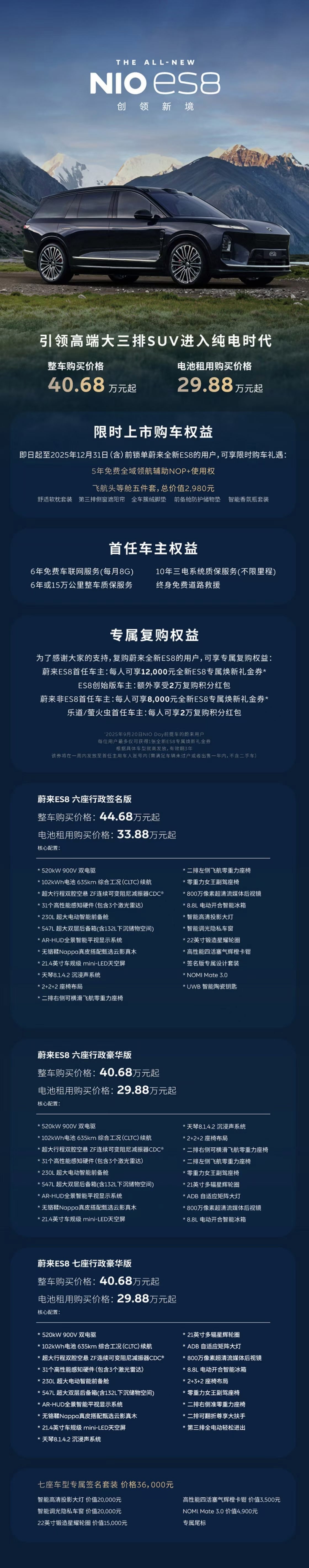 创领新境,蔚来全新ES8正式上市,引领高端大三排SUV进入纯电时代