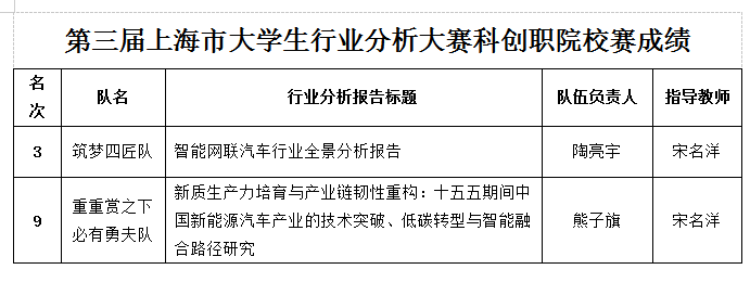 我院学生参加第三届上海市大学生行业分析大赛科创职院校赛获奖