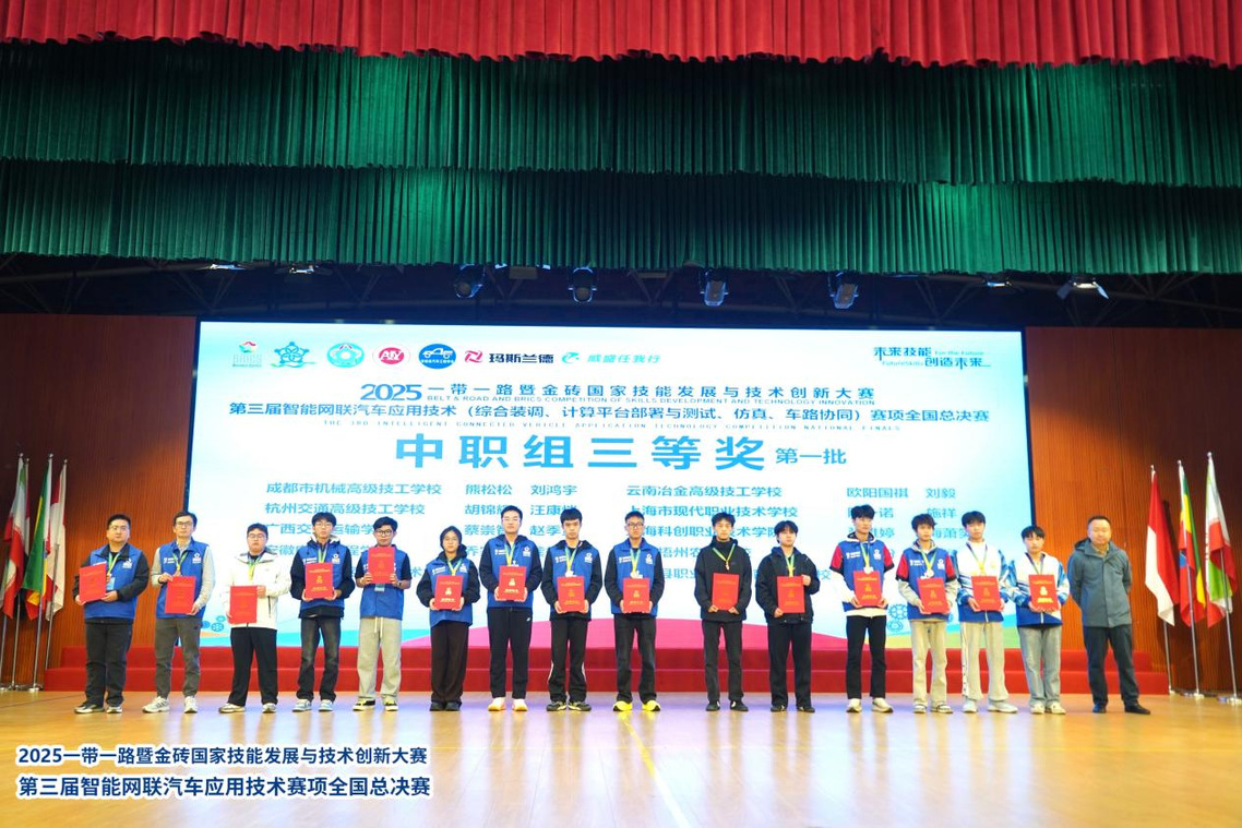 11月6-9日,2025“一带一路”暨金砖国家技能发展与技术创新大赛第三届智能网联汽车应用技术全国总决赛在安徽汽车职业技术学院开幕,这场汇聚了全国290支参赛队伍的顶级赛事,既是各国技能标准互鉴的平台,更是展现中国智能网联汽车技术人才培养成果的窗口。KY开元智能汽车学院派出中职组和高校组共4支队伍参赛,历经3天激烈的比赛,最终斩获4枚银牌和2枚铜牌!