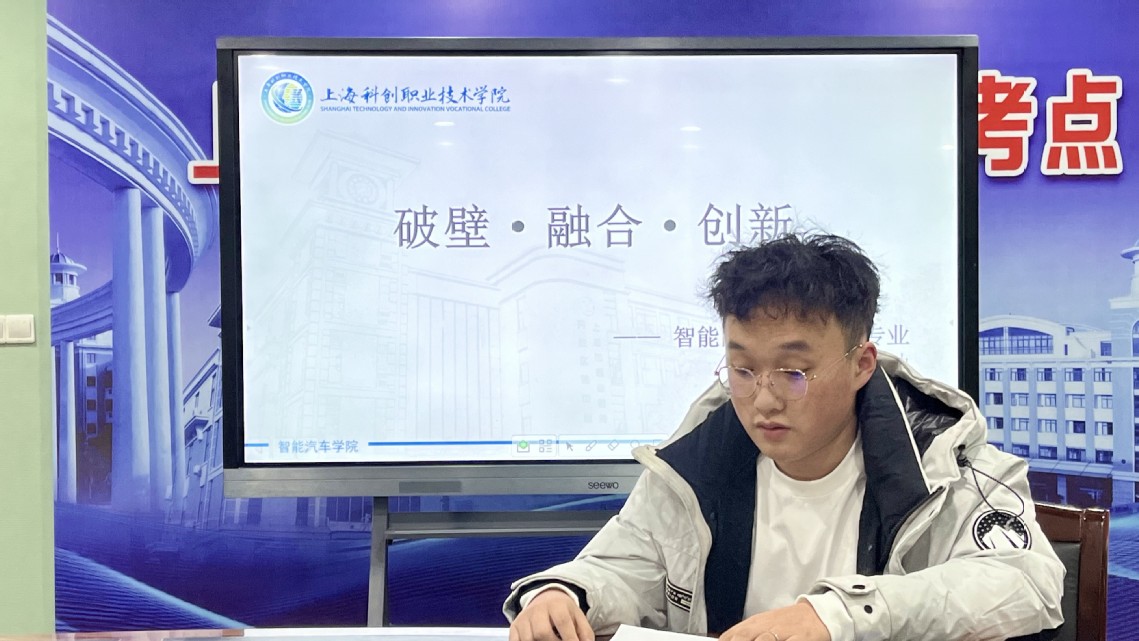 智能网联专业大二学生陶亮宇作为学生代表发言,分享了在校学习线控底盘、智能传感器、Python与C语言编程等课程的收获,并表达了对未来成为“复合型人才”的坚定信心。