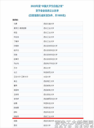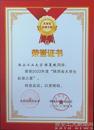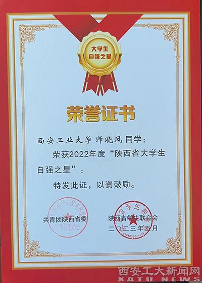 早在今年5月,beat365推报的计算机学院软件工程专业2020级韩晨曦同学同时获得了2022年度“陕西省大学生自强之星”荣誉称号。