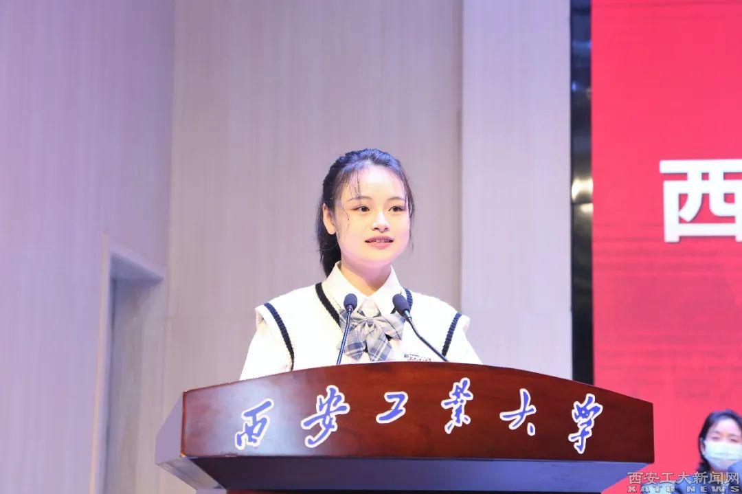 研究生新生代表光电工程学院王思淇同学在发言中呼吁大家一起成为仰望星空、脚踏实地的“西安工大人”。