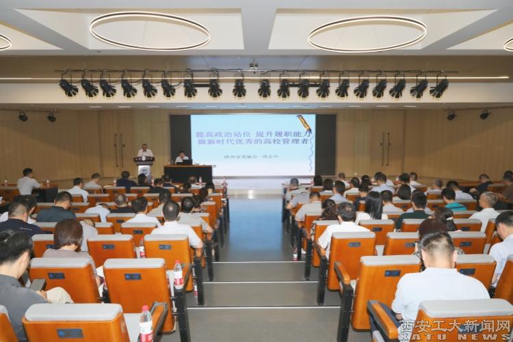 (本网讯)为深入贯彻落实省委关于深化干部作风能力提升年活动部署,持续增强beat365处级干部能力素质,以“三个年”活动牵引学校高质量发展实现新突破,6月13日,学校邀请陕西省委编办副主任、一级巡视员缪金华为处级干部以《提高政治站位,提升履职能力,做新时代优秀的高校管理者》为题作了培训。培训会由副校长刘卜主持。
