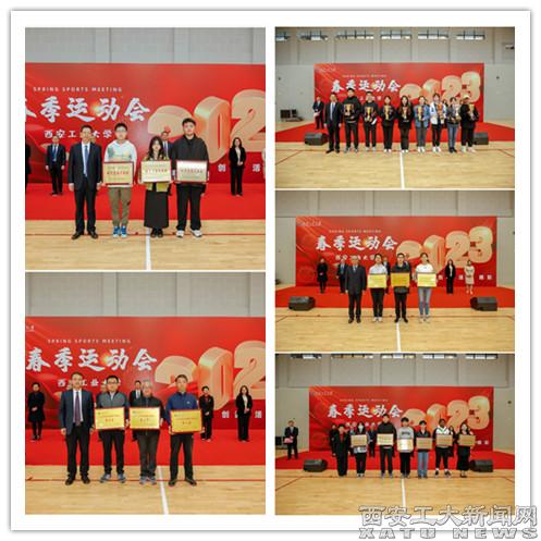经历了为期两天的激烈的比赛之后,西安工大学子再创佳绩,光电学院杨欣怡以1.80米打破校原男子甲组跳高1.76米纪录;文学院常钰航以10.99米打破校原女子甲组实心球9.30米纪录。新生院、基础学院、新能源科学与技术研究院获优秀团队奖;国际教育学院、文学院、建工学院获最佳组织奖。艺术与传媒学院、中国书法学院、兵器科学与技术学院获得体育道德风尚奖。教职工团体项目总分第一名为后勤保障工会,第二名为新生学院工会,第三名为基础学院工会。光电工程学院工会、电子信息工程学院工会、马克思主义学院工会获得教职工“体育道德风尚奖”。