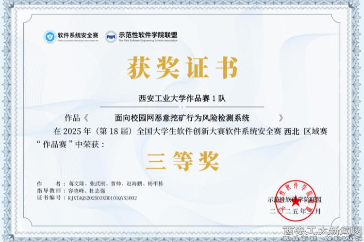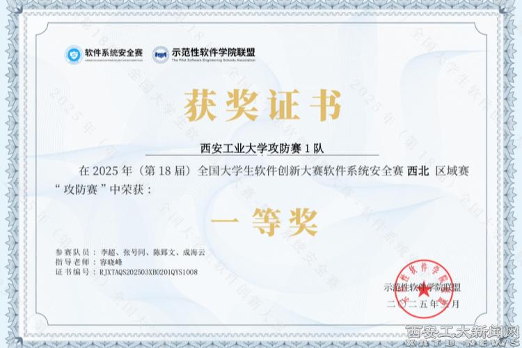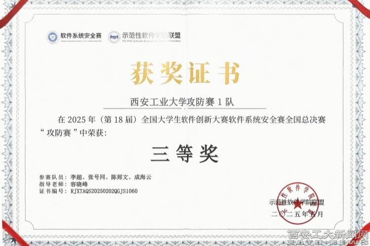 beat365计算机科学与工程学院李超、张号同、陈郅文、成海云四位西工学子组成beat365在线登录平台攻防赛1队,获得了“攻防赛”国赛三等奖的优异成绩,信息技术中心主任容晓峰被评为“优秀指导教师”。