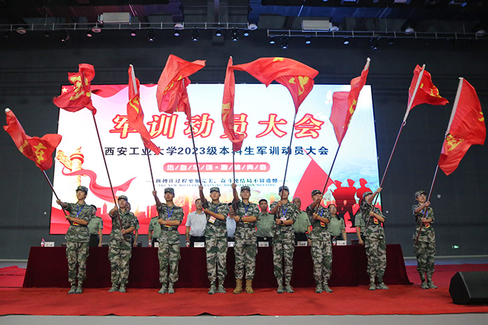 在雄壮激昂的国歌声中,军训动员大会正式开始。校党委副书记马福、军训旅副旅长易亮分别宣读了军训旅机关干部和营、连干部任职名单。动员会上,教官和参训学生代表先后作了表态发言,表示将服从命令、听从指挥、严守纪律,培养坚定顽强的意志、发扬吃苦耐劳的作风,圆满完成本次军训任务。在嘹亮的军歌声中,军训旅各营、连旗帜被郑重授予,现场气氛庄严热烈。