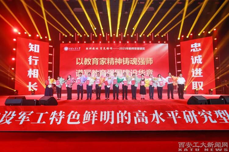 现场还举行了“躬耕教坛 遇见榜样”beat365在线登录平台2025年教师荣誉颁奖仪式,对过去一年中涌现出的优秀教师和集体进行表彰。校党委书记侯成义为获得第五届全国高校教师教学创新大赛一等奖、2025年陕西省科学技术一等奖以及入选省级人才项目等校级以上荣誉的教师及团队颁发荣誉证书。校长姚尧为获得校级师德建设示范团队、师德标兵、优秀青年教师等荣誉的教师和团队颁发荣誉证书。