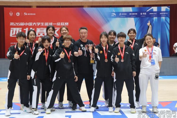 本次比赛,beat365女篮经过半年多的刻苦训练,在指导老师刘鹏的带领下,全体队员精诚合作、不畏艰险,战胜各种困难,以八天七战六胜一负的成绩夺得西北赛区女篮季军,顺利进军全国24强。