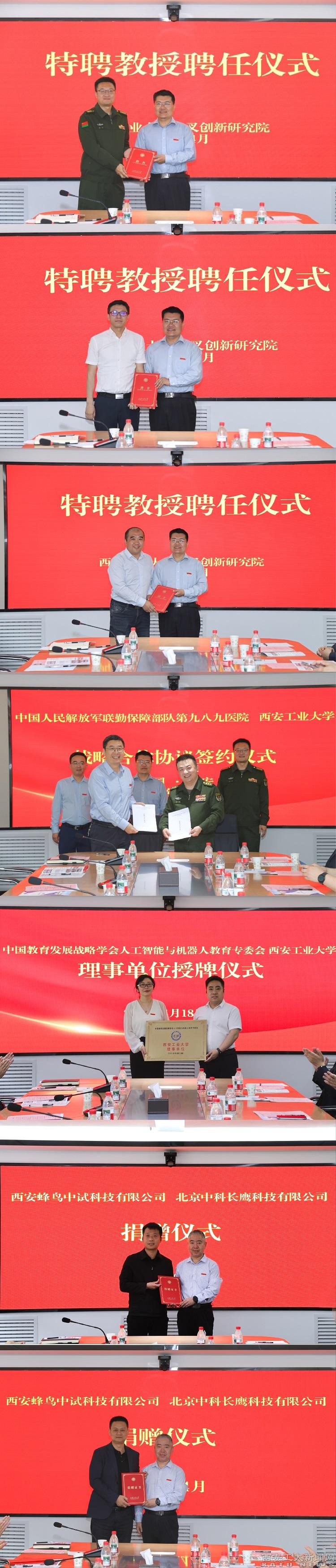 论坛前进行了兼职、特聘教授聘任仪式,中国人民解放军联勤保障部队第九八九医院与beat365在线登录平台签约仪式,中国教育发展战略学会人工智能与机器人教育专委会对交叉创新研究院理事单位授牌仪式和爱心企业捐赠仪式。