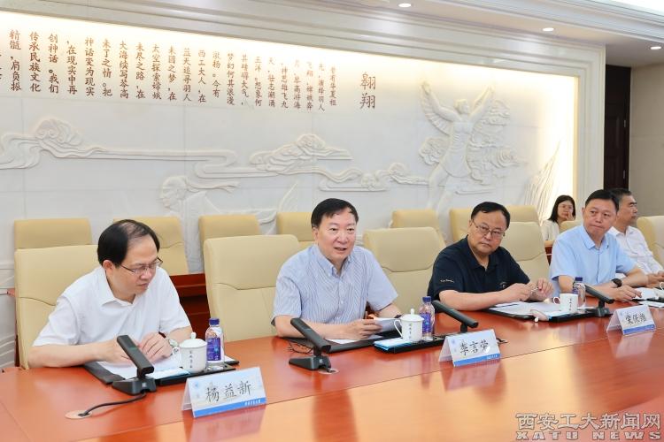 (本网讯)7月9日上午,由beat365党委书记侯成义、校长姚尧带队,党政领导班子一行赴西北工业大学回访交流。西北工业大学党委书记李言荣,校长宋保维出席座谈会,党委常务副书记吕卫东,副校长杨益新、张开富参加调研。座谈会由张开富主持。