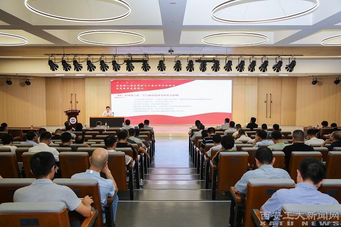 (本网讯)9月4日上午,学校在未央校区图书馆报告厅举办学习贯彻党的二十届三中全会精神宣讲报告会。校党委书记刘卫国作宣讲。宣讲报告会由党委副书记梁云鹤主持。